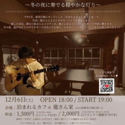 \やさしい音色に浸るひととき/12月6日(土)、泊まれるカフェ龍さん家にて『ひとりギター夜会』が開かれます